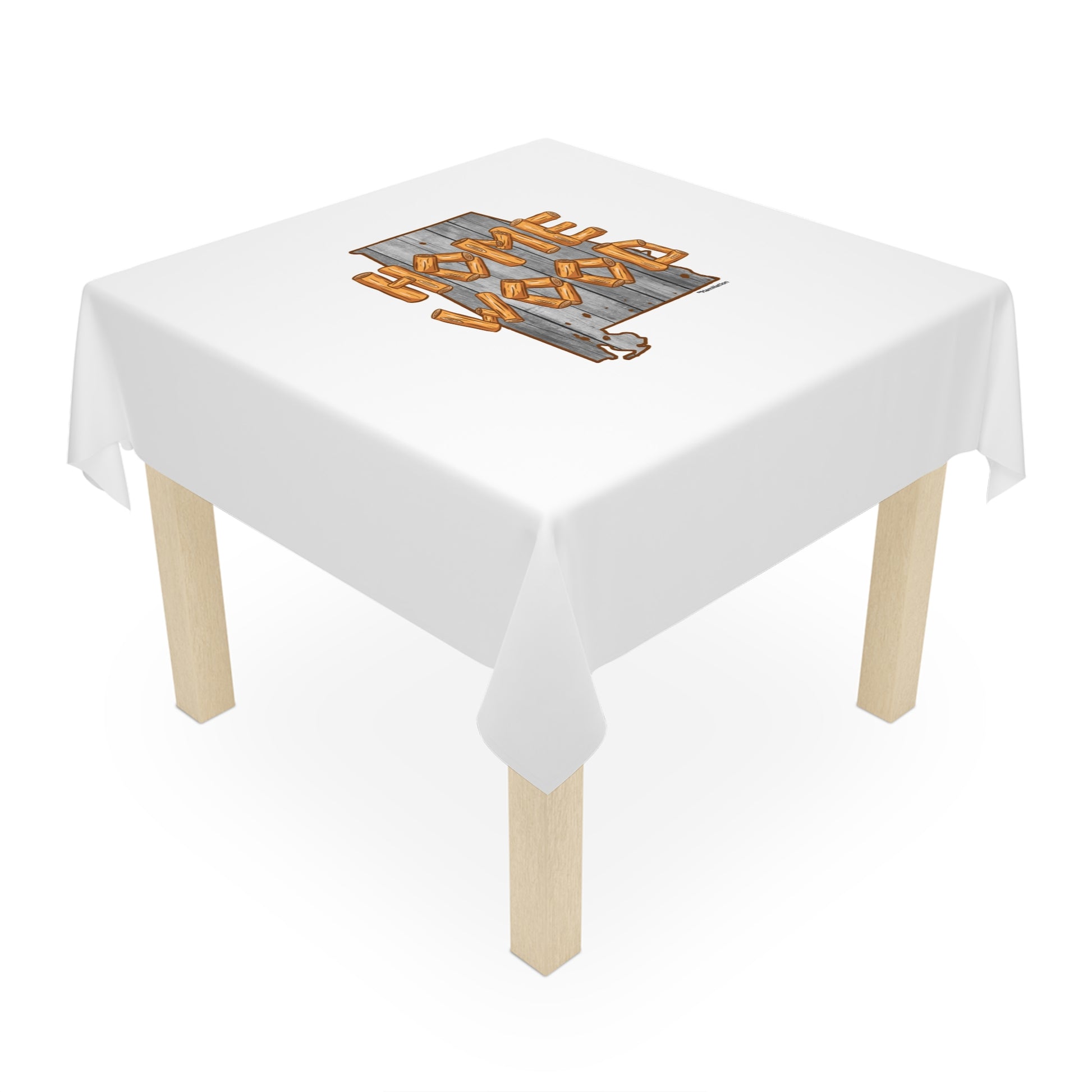 Uplift any home's aesthetics with this personalized tablecloth. Measuring in at 55.1" by 55.1", this personalized table cloth is a full-print product meaning it will display your custom designs on the entirety of the cloth's surface. What's more, the 100% polyester fabric construction makes it effortless to maintain like new.